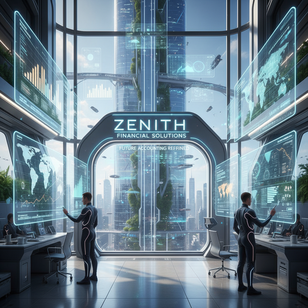 Accounting professional collaborating with AI systems in a modern, tech-driven workspace, illustrating the future of enterprise finance.
