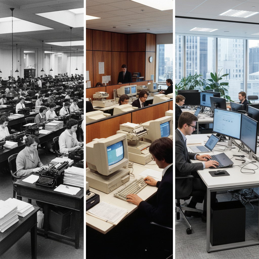 | 1970s | Typing, filing | Secretarial, low-skill | Paper to digital |
