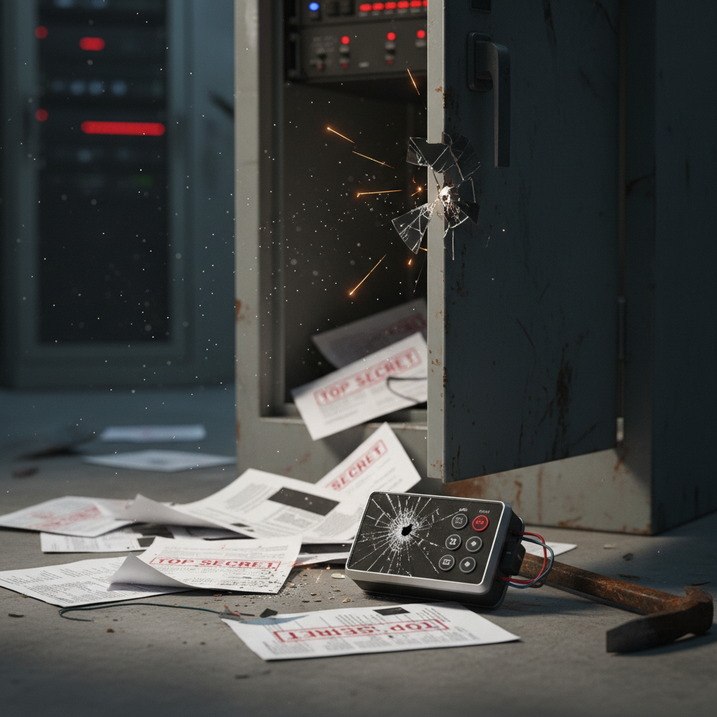 Alt: Broken digital lock symbolizing document insecurity and administration flaws