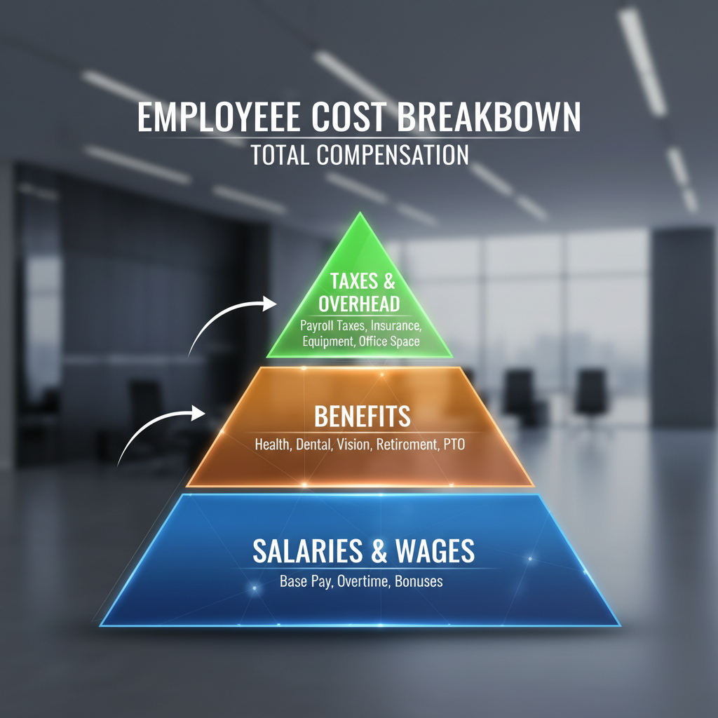 - Layer in admin/HR costs: Payroll processing, compliance, and management overhead.