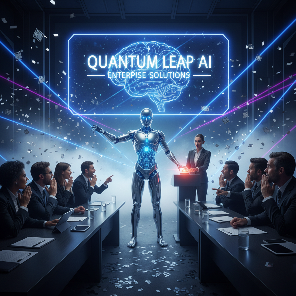 Alt: Team launches AI assistant integration in enterprise, highlighting anticipation and drama