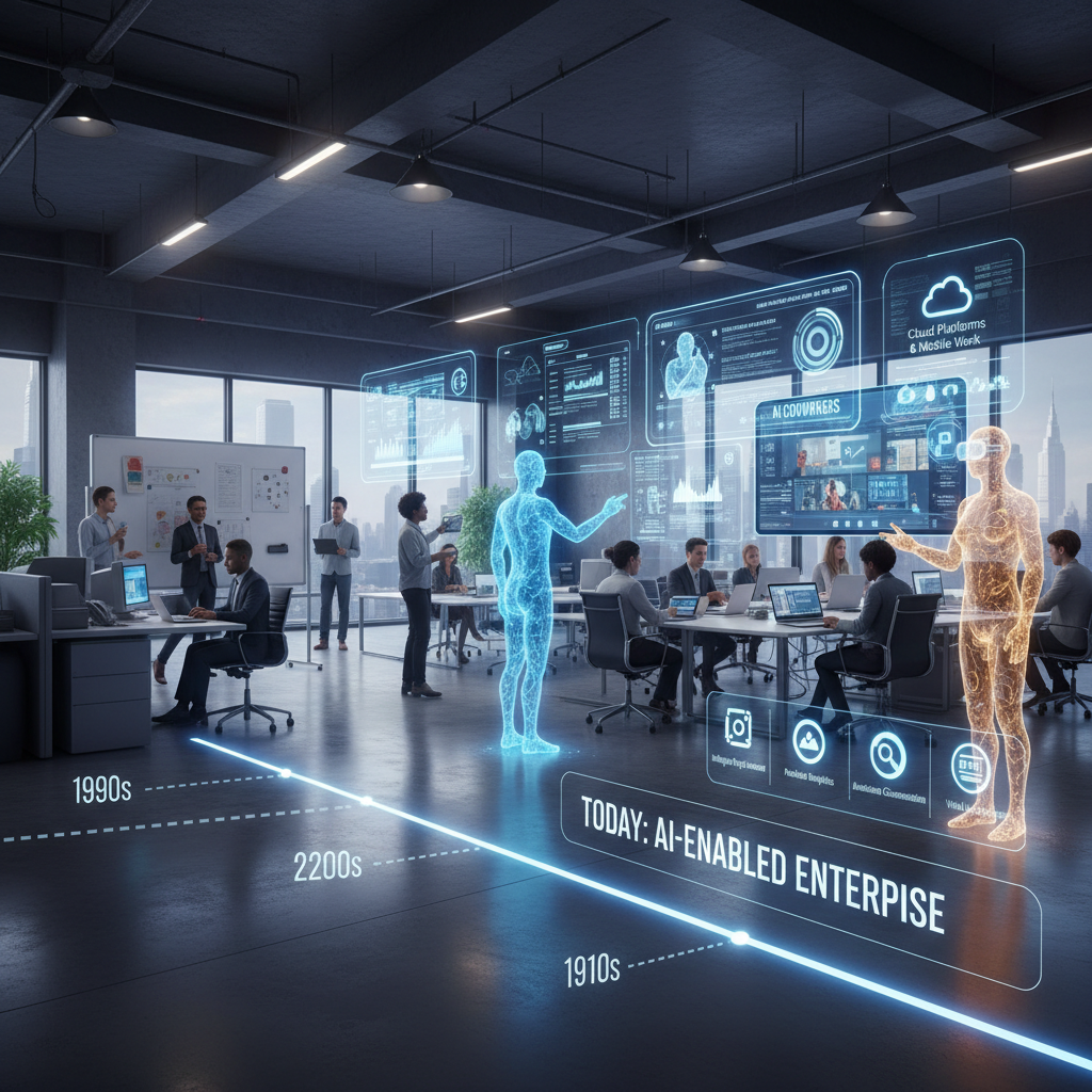 - 1990s: Groupware (Lotus Notes, Novell)—centralized but rigid.