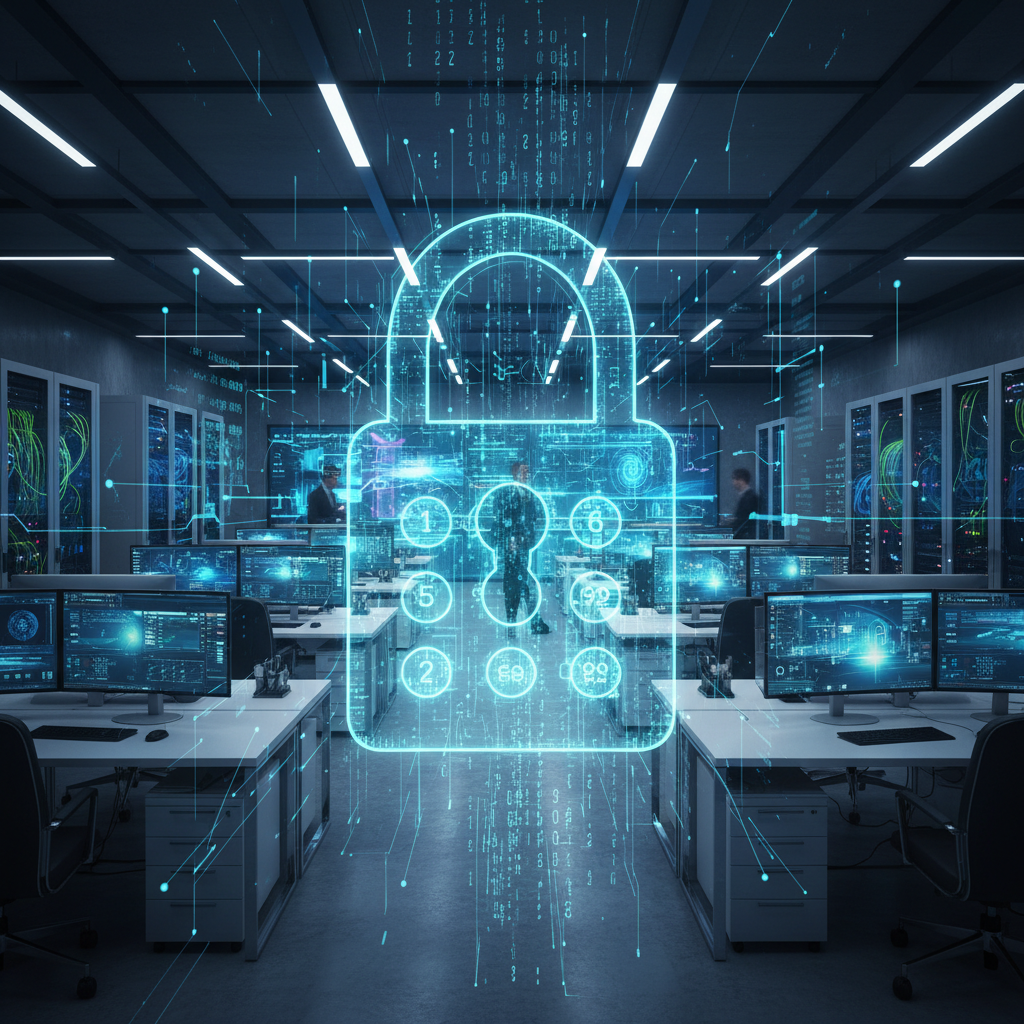Data privacy and security in AI collaboration, representing the invisible yet critical layer of protection required for enterprise-grade tools.