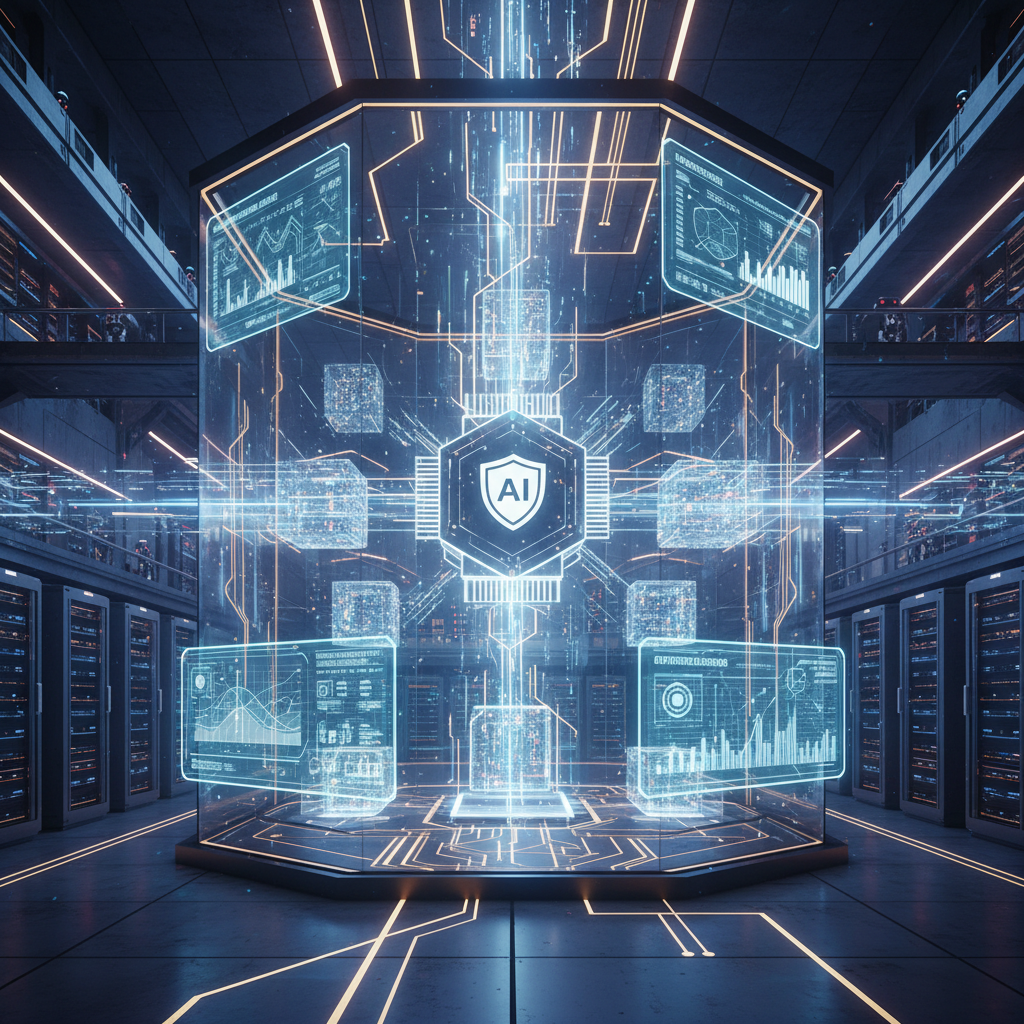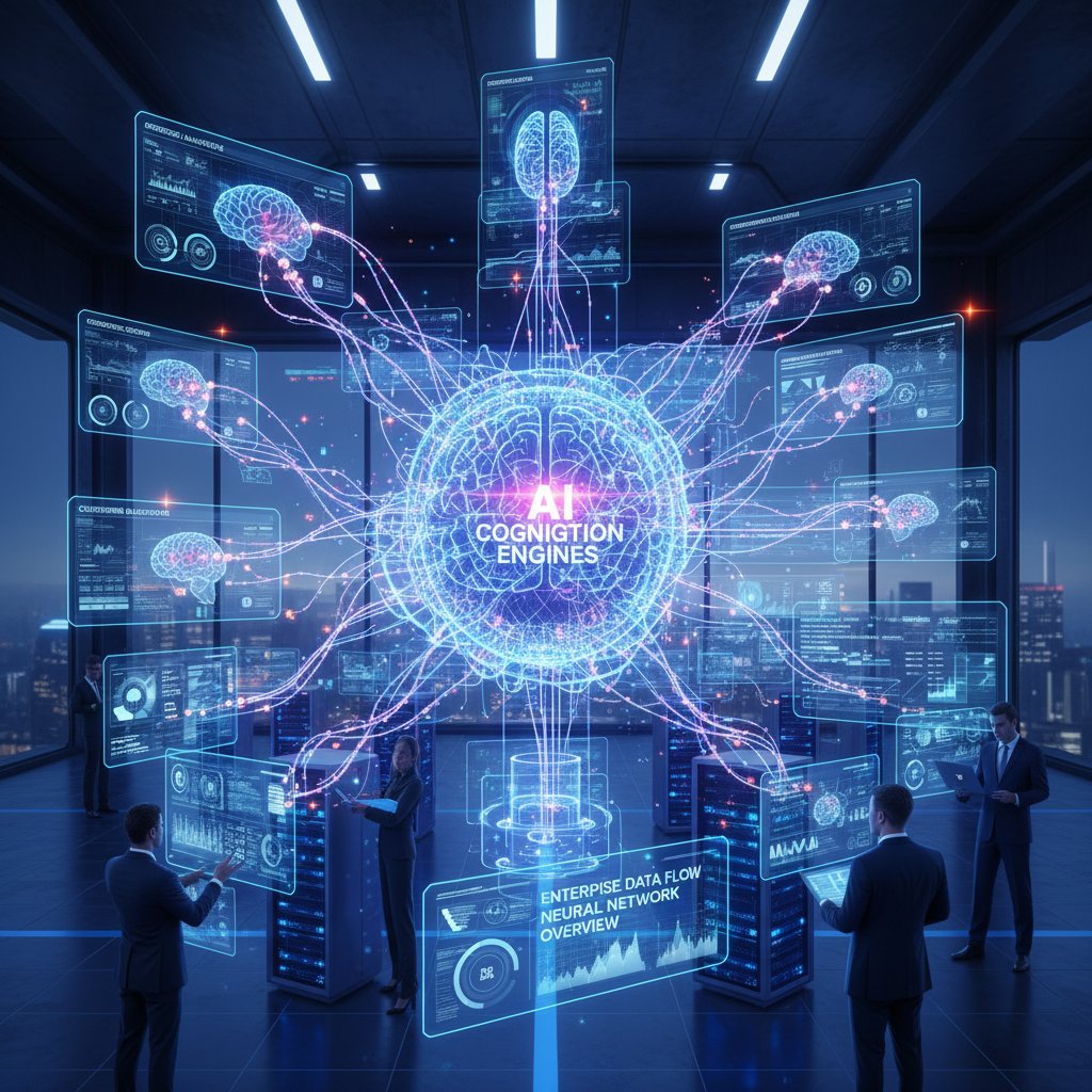 Alt: Artistic photo representing enterprise data moving through glowing AI neural networks, symbolizing behind-the-scenes workflow automation.