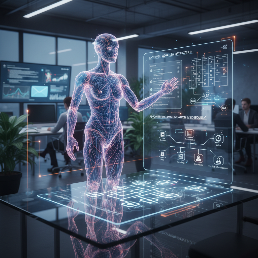 Alt text: AI teammate orchestrating enterprise workflows via email and calendar in a business environment