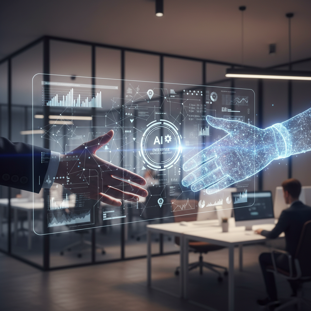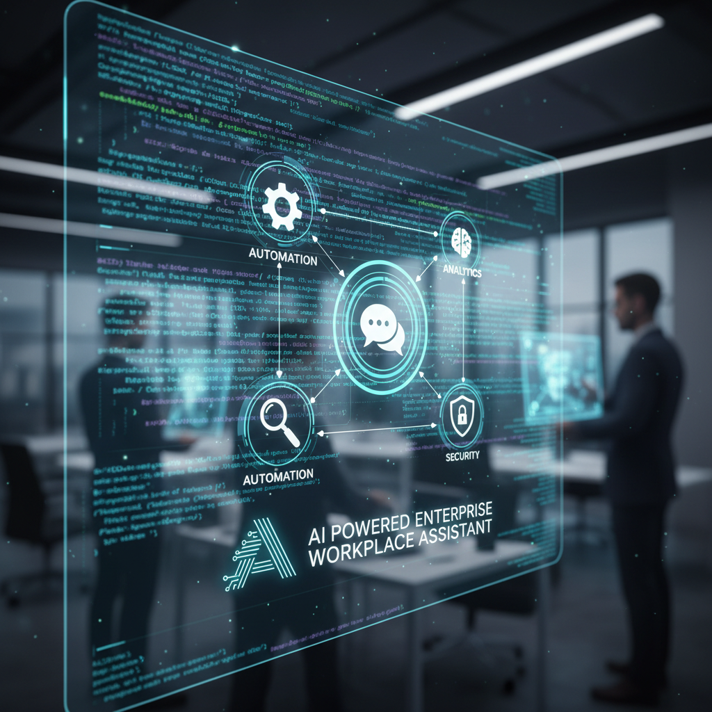 - Enterprise AI assistant: Software built for business environments that automates, augments, and orchestrates workplace tasks beyond traditional scripting or template-based tools.