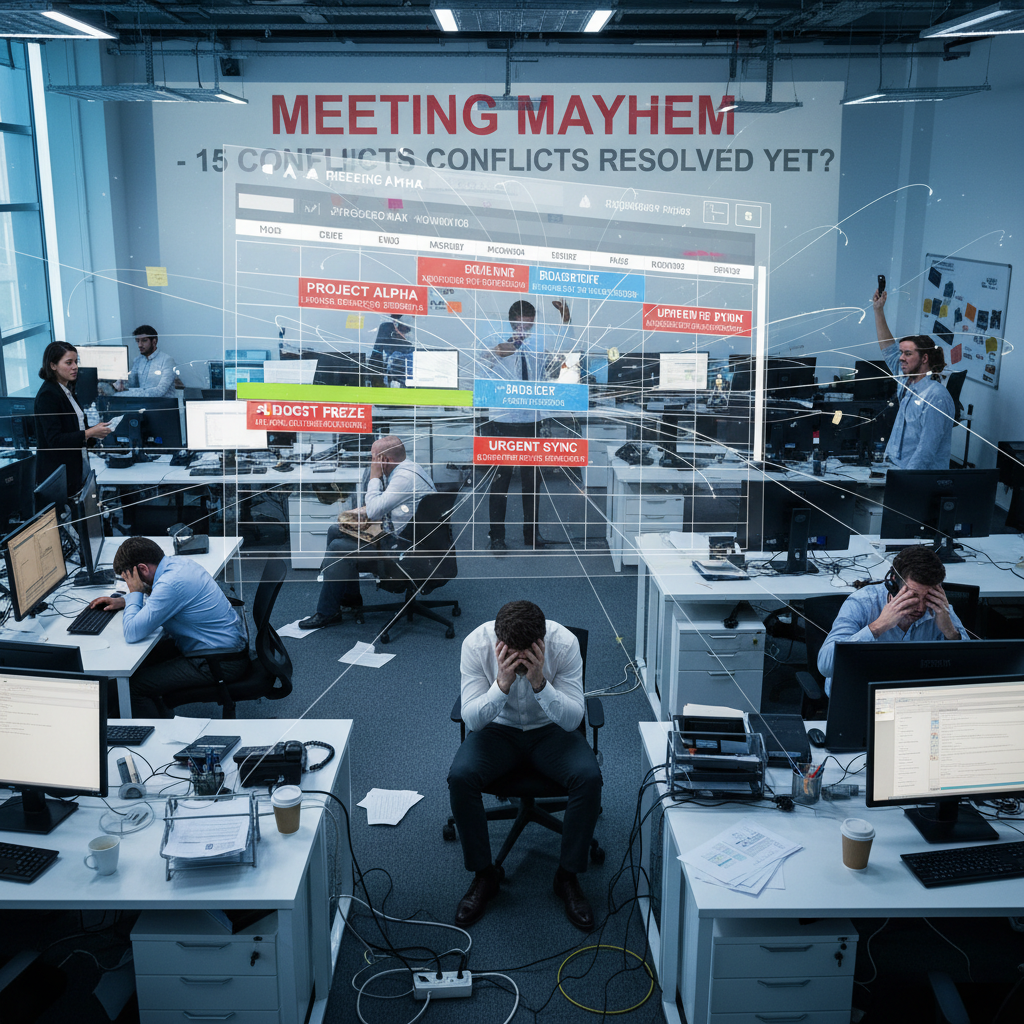 - Calendar Tetris: The exhausting and error-prone process of fitting meetings into limited windows, often resulting in fragmented days and lost productivity.