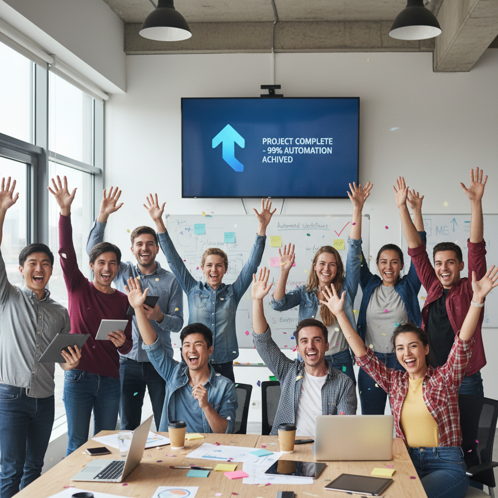 Team celebrates smooth project execution after implementing automatic email task assignments.