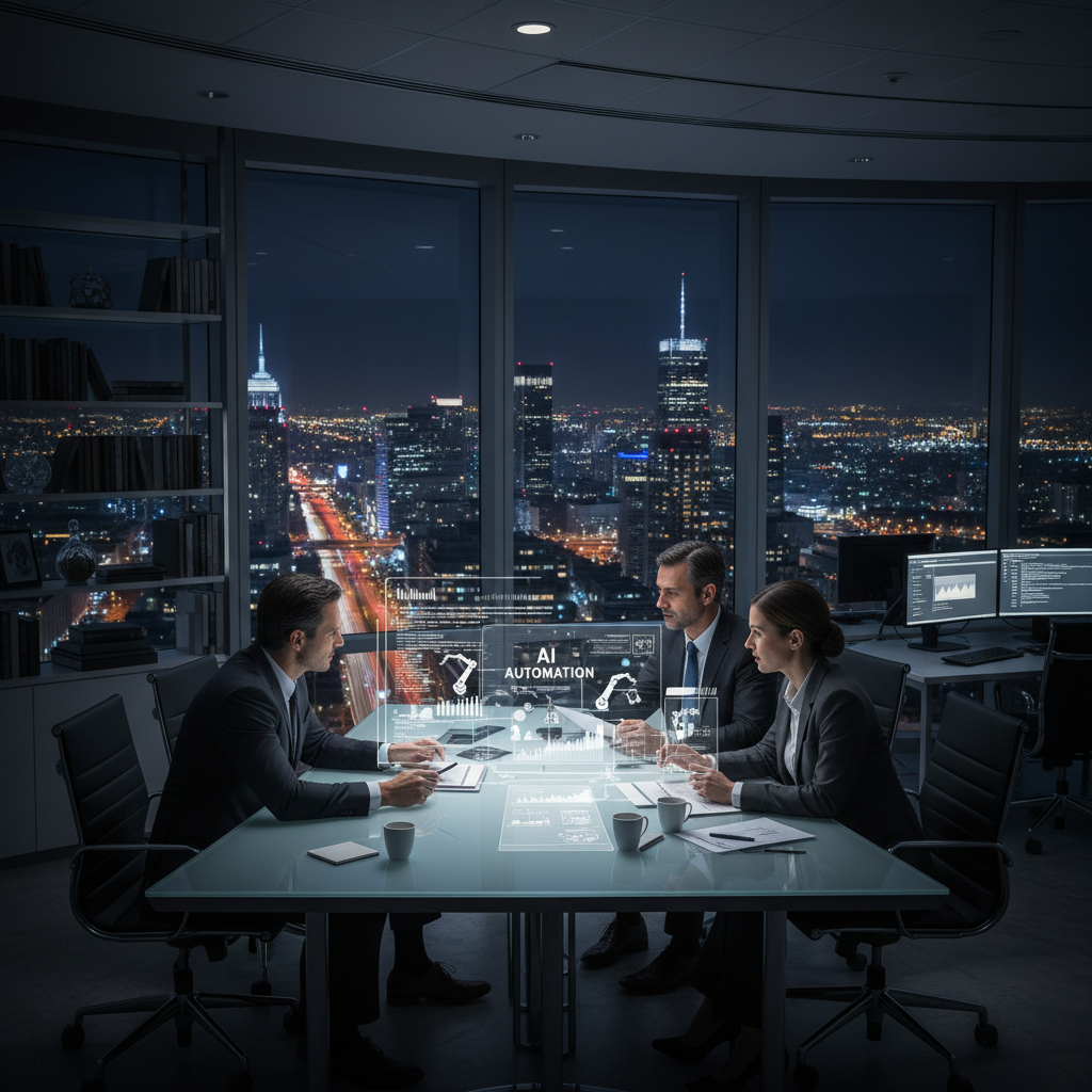 Executives debating business process automation AI strategy in a tense, high-stakes boardroom.