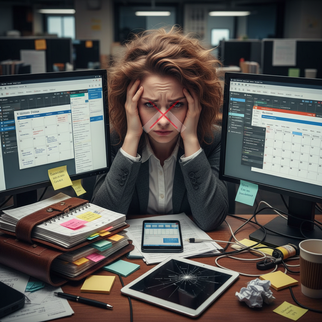 - Cognitive overload: The mental strain of juggling multiple calendars, shifting priorities, and pop-up alerts, leading to reduced decision quality.