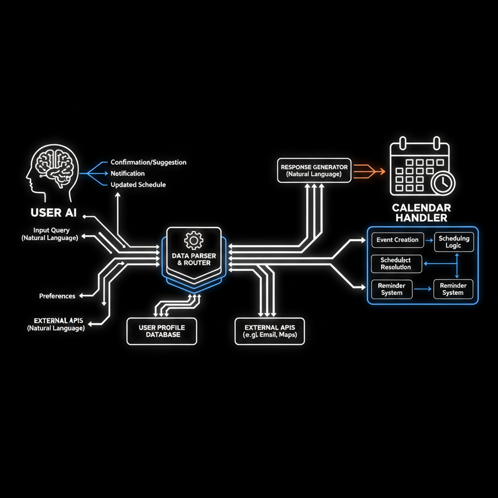 - Intent recognition: Parses the user’s request (“Can we meet this week?”) and extracts intent, constraints, and preferences.