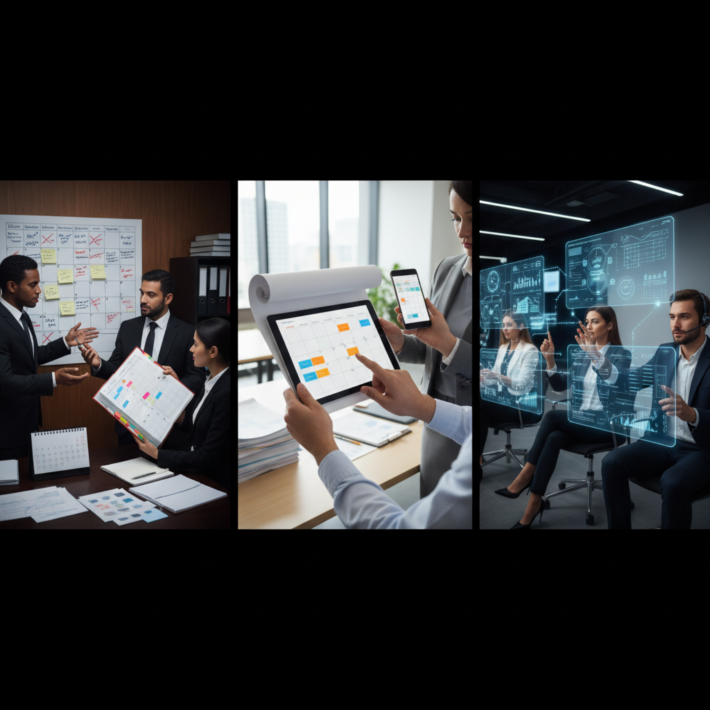 | Pre-digital | Paper, wall calendars | Manual coordination, in-person checks | Prone to errors, slow |