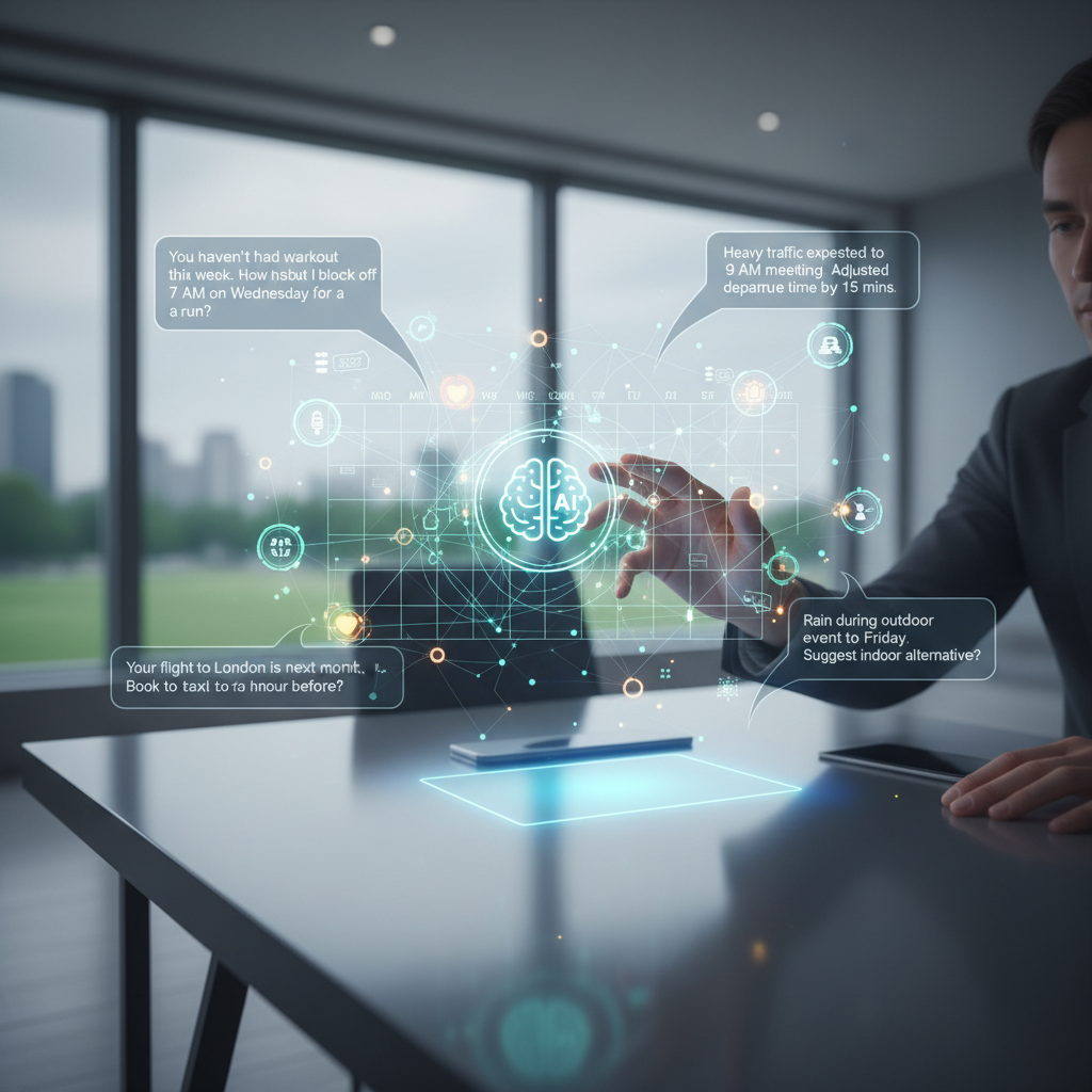Alt text: Conceptual photo of AI assistant anticipating and predicting calendar events for smarter time management.