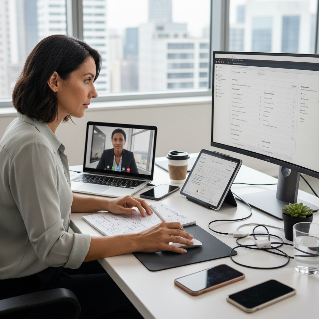 Alt: A client service professional multitasking with empathy and precision, reflecting adaptability and teamwork.