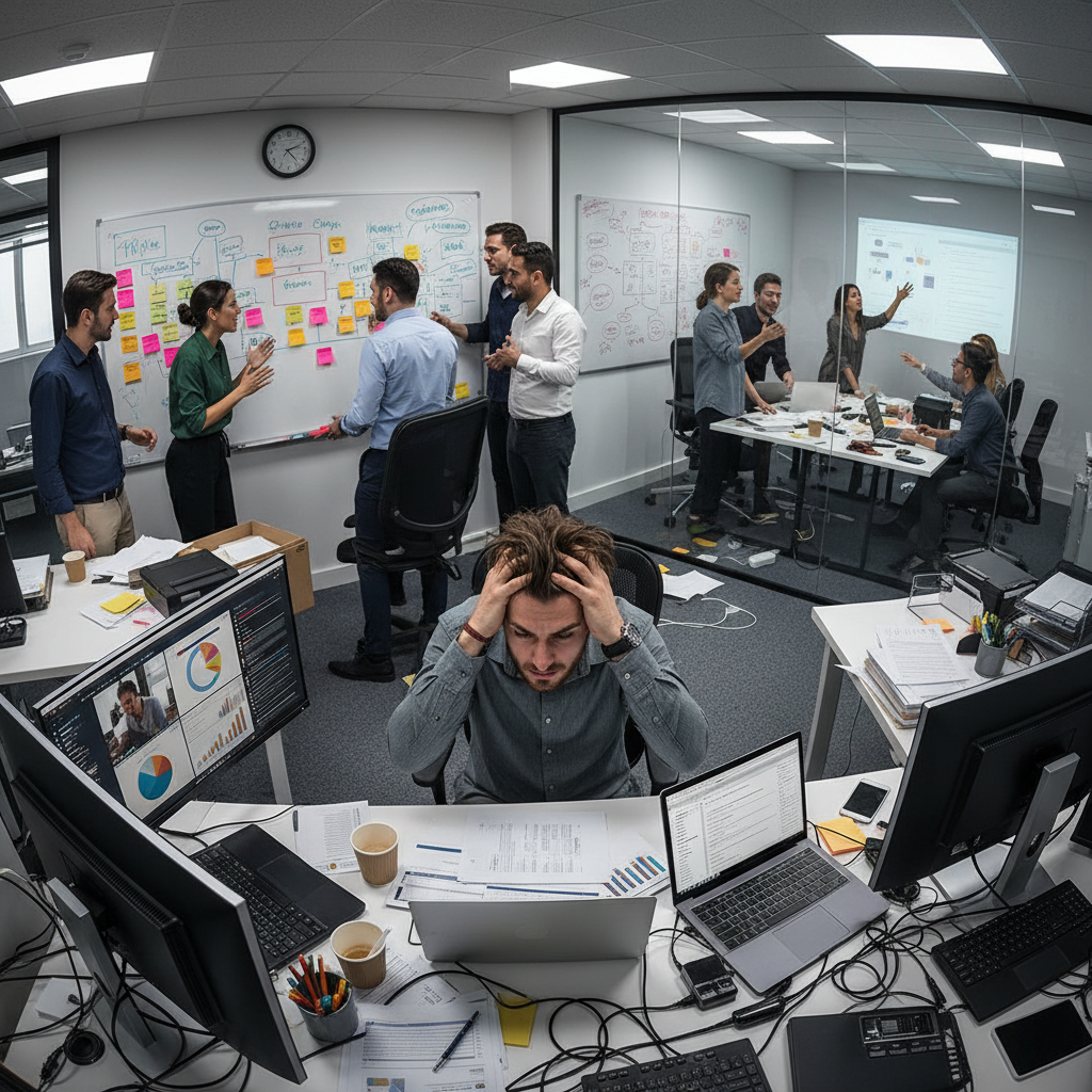 Unseen, unpaid labor required to manage, sync, and interpret fragmented communication streams. This is the real drain behind the “productivity paradox.”