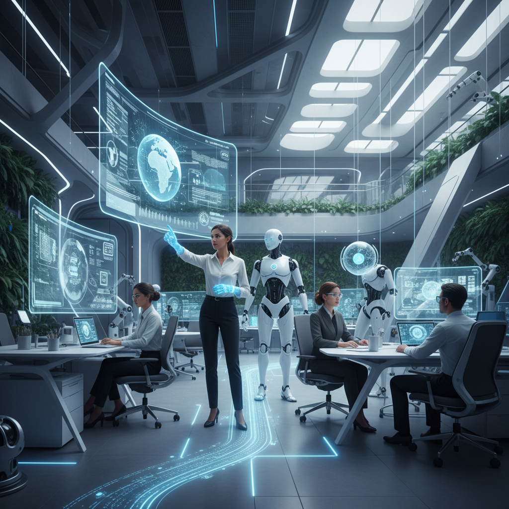 Alt: Future vision of communication coordination in the enterprise, humans and AI collaborating