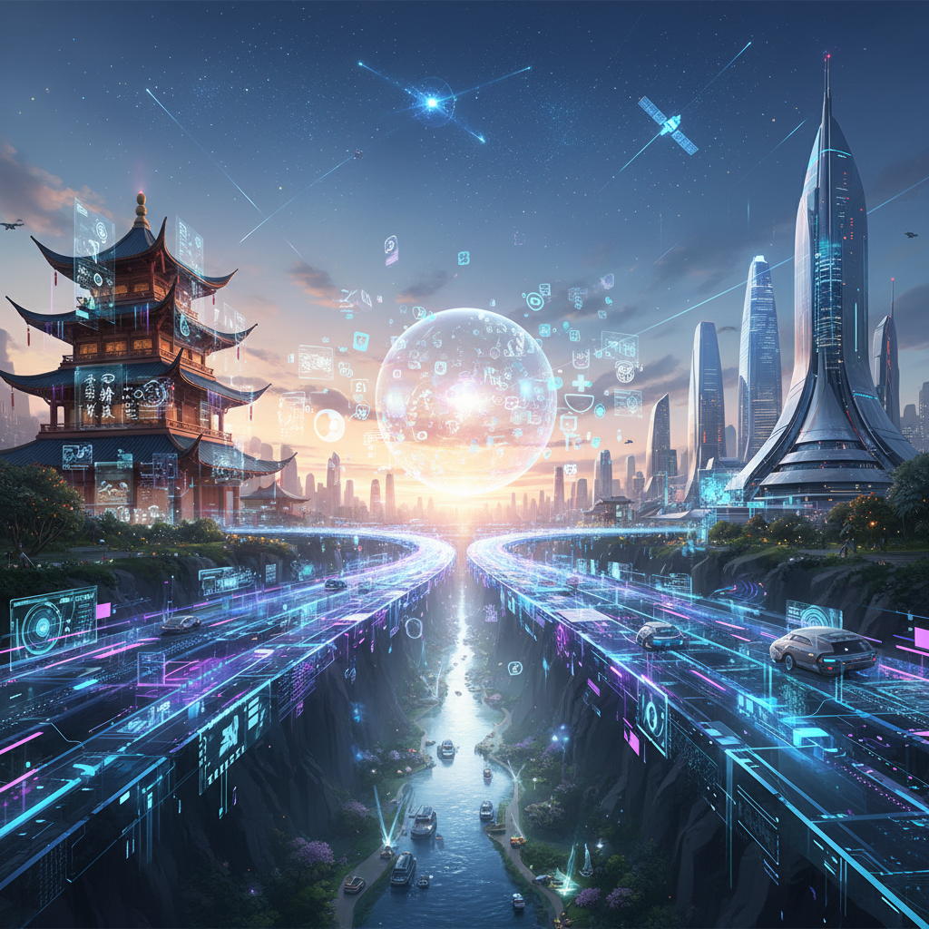 Alt text: Symbolic visual of a digital bridge connecting past and future communication technologies