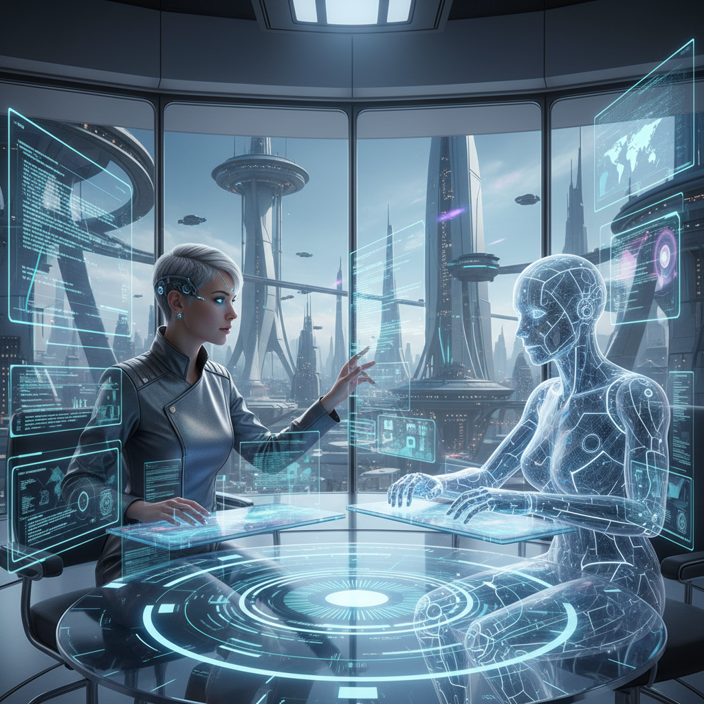 Photo of a human and AI bot in a tense, digital communication exchange, highlighting the future of collaboration