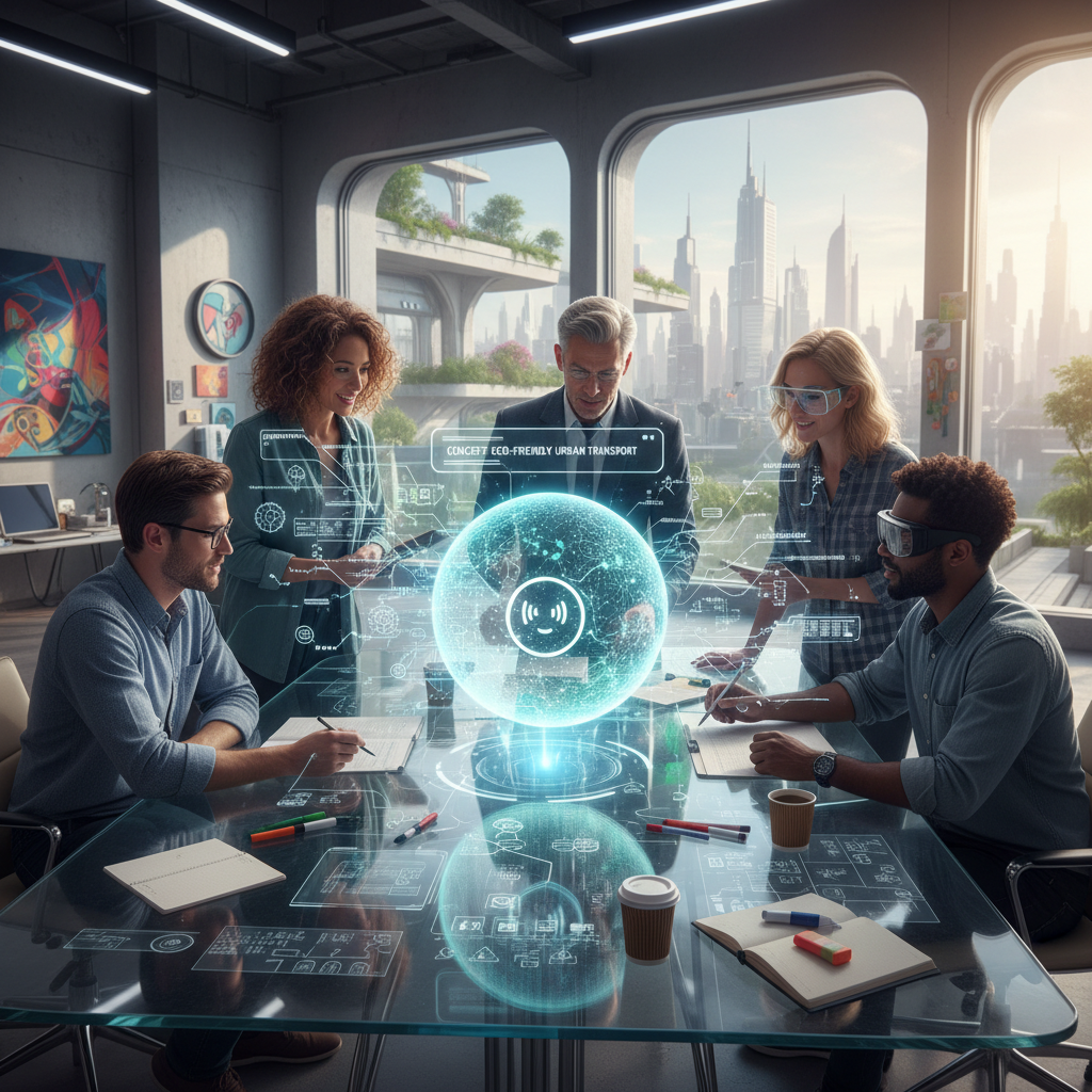 Alt text: Creative team using an AI-powered digital helper during a collaborative brainstorming session, reflecting modern enterprise collaboration.
