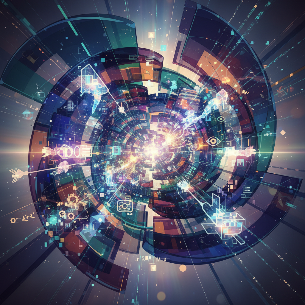 Alt text: Abstract, symbolic vision of a post-digital workspace, representing the next frontier after computer managers.