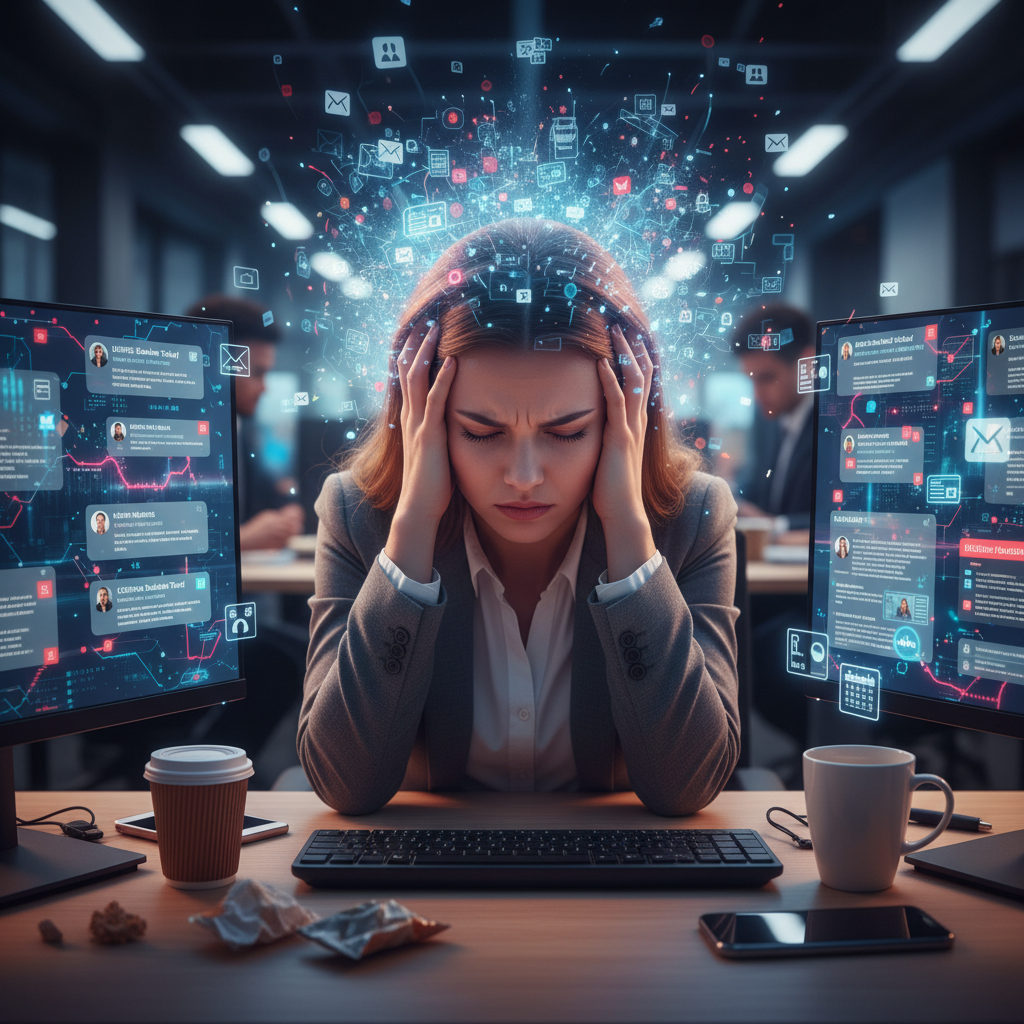 - Employee burnout from digital notification overload and “automation fatigue.”