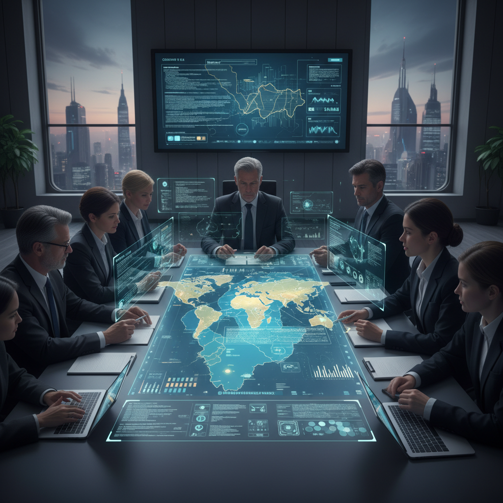 Alt text: Group of diplomats reviewing digital maps and coordinate files during a tense border negotiation.