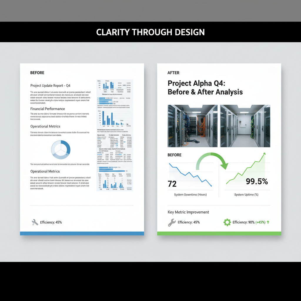 The pitfall? Design-for-design’s-sake. Reports that win awards for aesthetics but lose in the boardroom because nobody can find what matters.