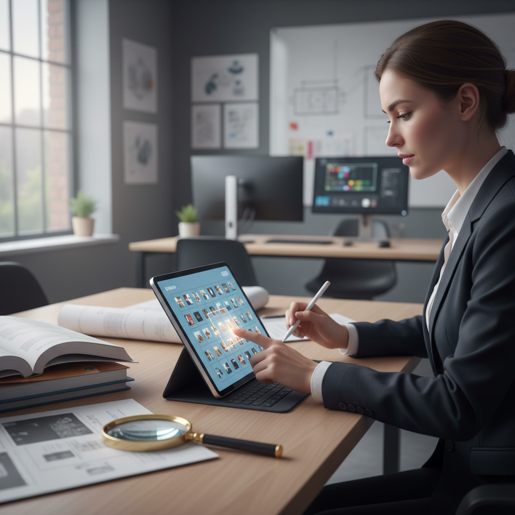 Alt: Modern assessment of attention to detail through interactive tablet testing.