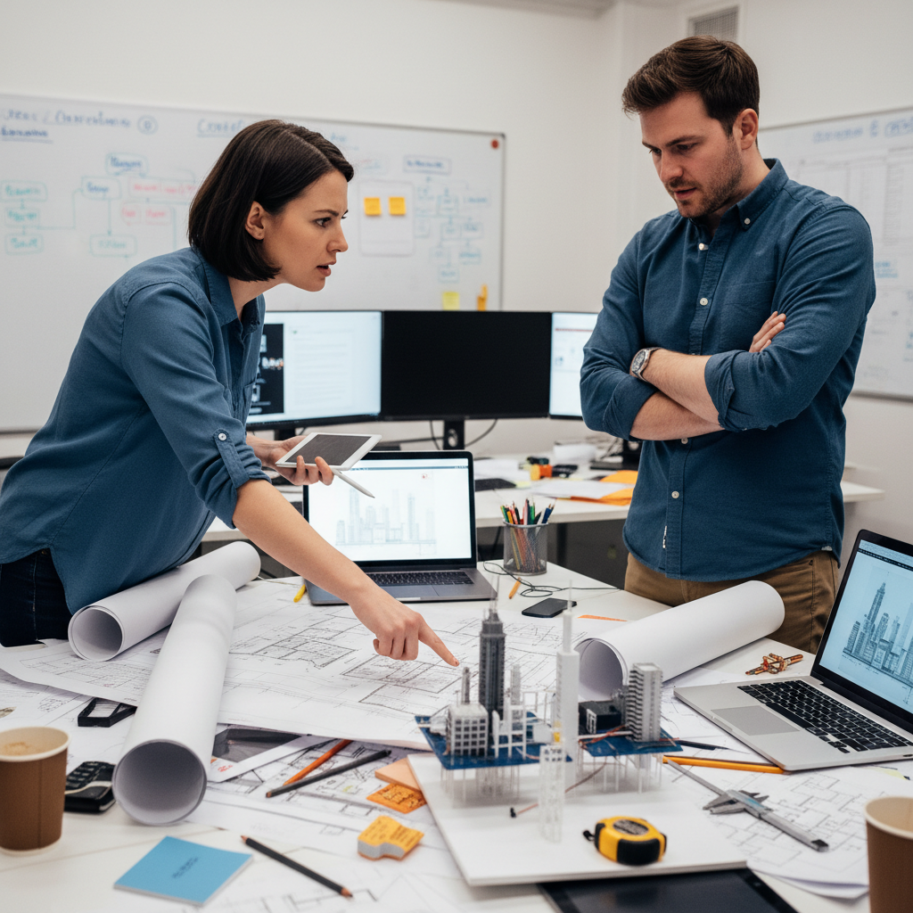 Alt: Team members debating details in a tense meeting, highlighting how detail orientation can create friction and breakthroughs