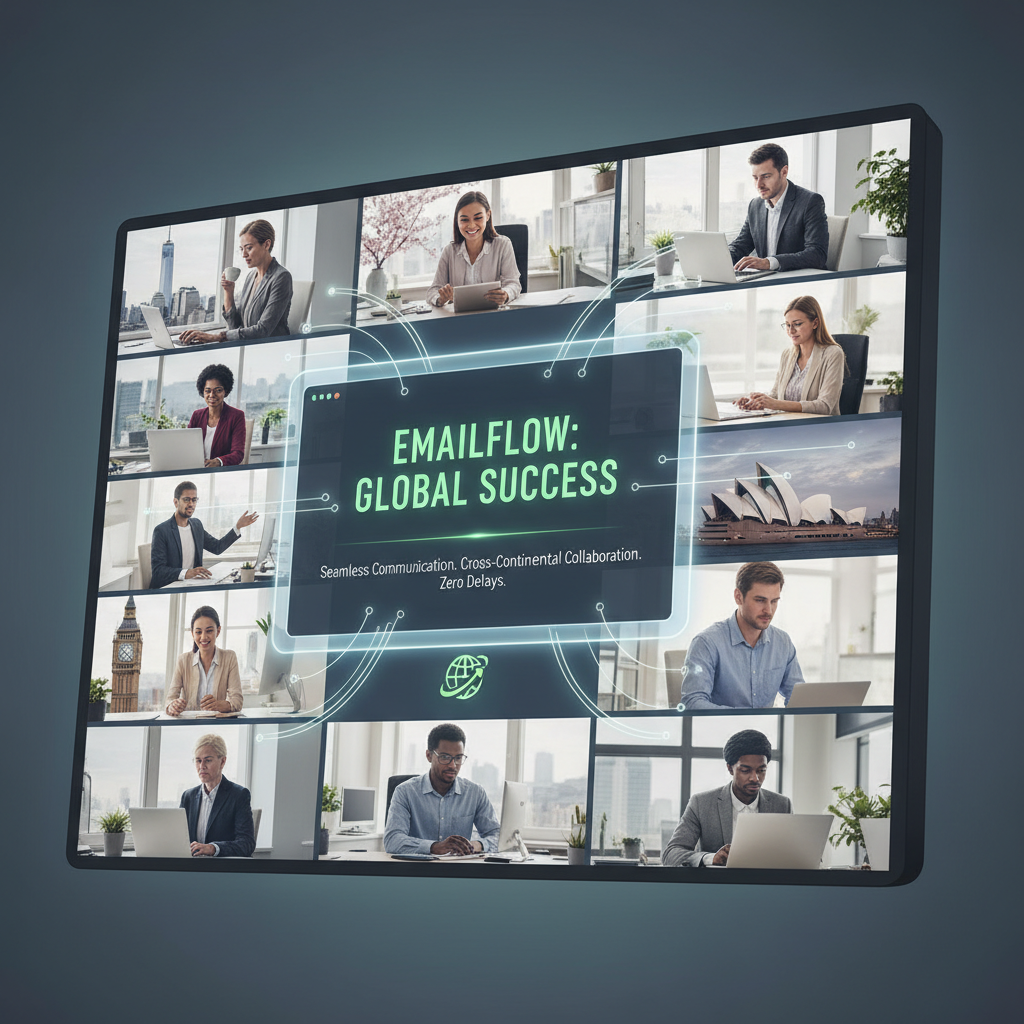 Alt text: Distributed remote team collaborating productively across multiple time zones with online email collaboration software