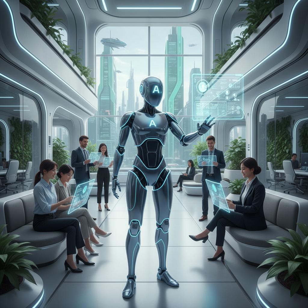Photo: Enterprise team collaborating with AI digital coworker in a modern office