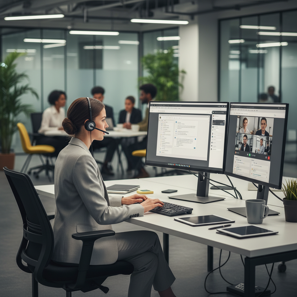 Photo: Enterprise employee juggling between email and chat applications, symbolizing tool fragmentation