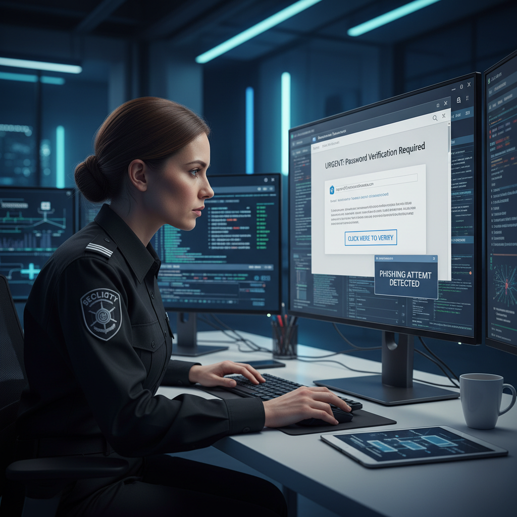 Photo: Enterprise security officer analyzing suspicious emails for phishing attempts