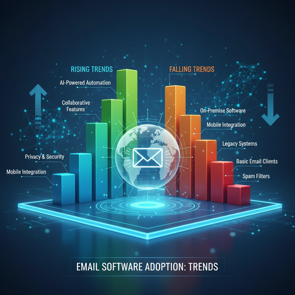 Alt text: Email productivity software market trends 2025, with user adoption and satisfaction rates.