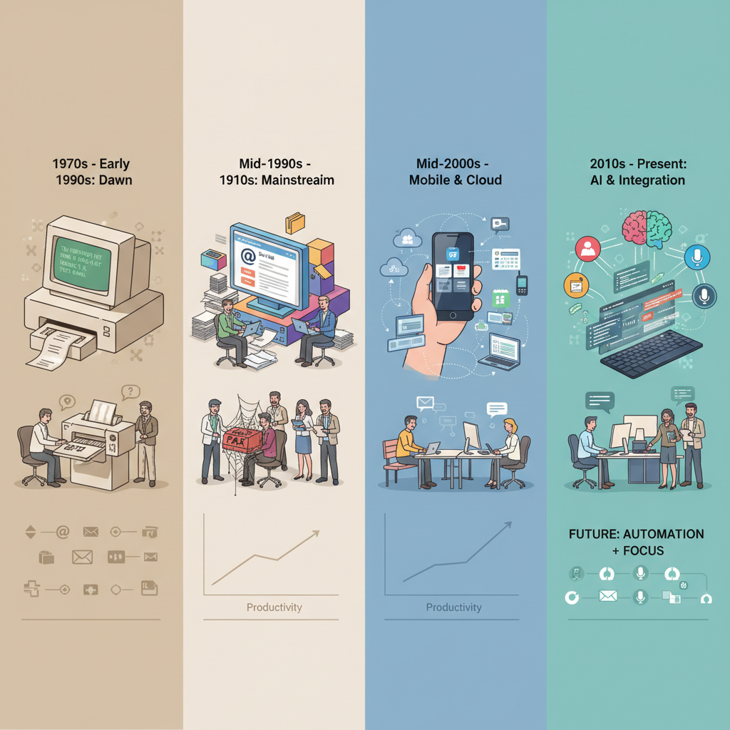 - 2021: Outlook Copilot and other AI bots appear. Automated triage and drafting expand to enterprise scale.