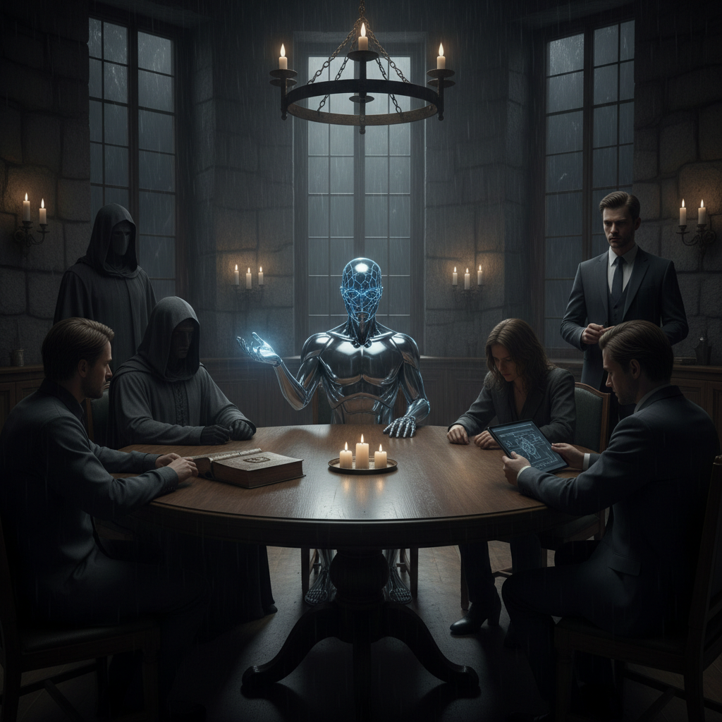 This evocative image explores the shifting power dynamics of AI in workplace collaboration—a central theme in the adoption of email task assignment automation.