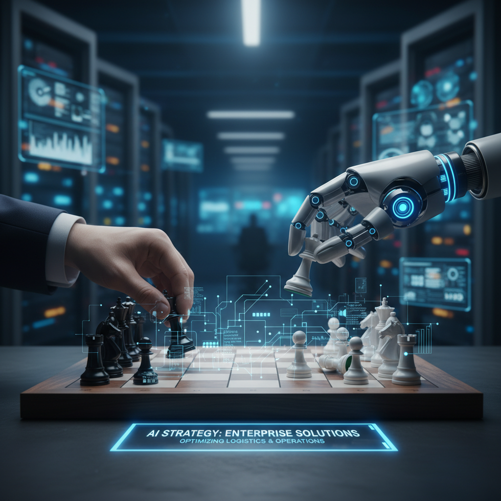 Chessboard with human and robotic hands moving pieces, symbolizing strategic tension of enterprise AI adoption