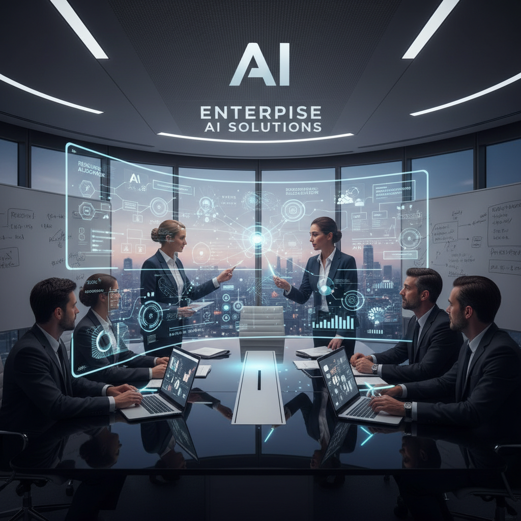 Alt text: Enterprise team planning AI-powered email productivity app implementation, focusing on collaborative deployment strategy.