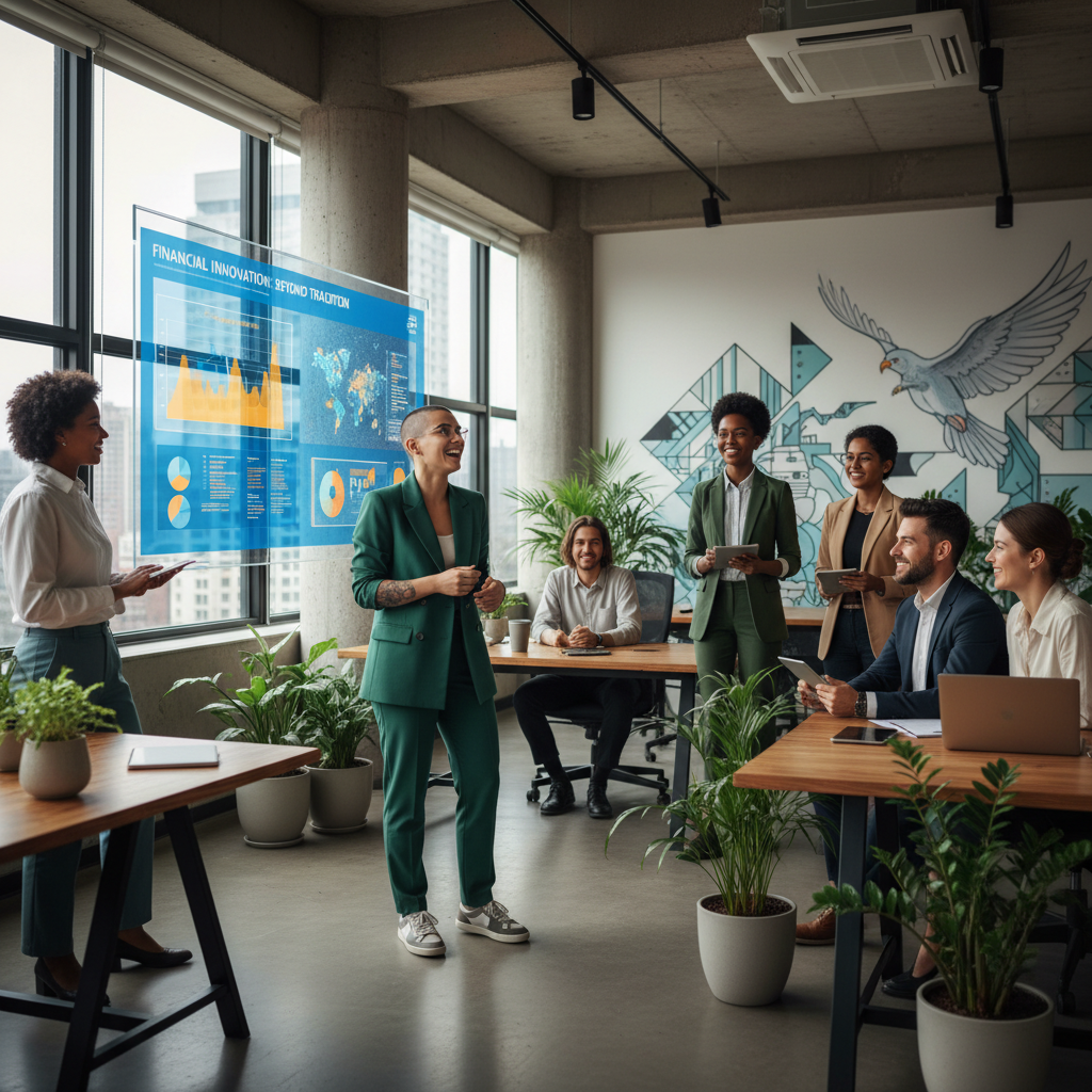 Alt text: Financial coordinator breaking stereotypes in a modern office, challenging outdated roles, and embracing digital innovation