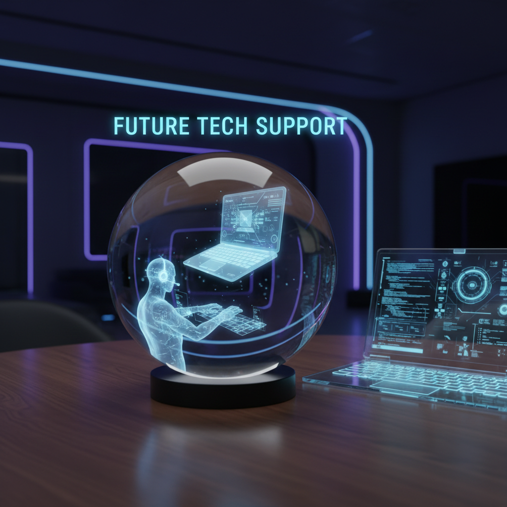 Alt text: Future of tech support crystal ball on a laptop symbolizing evolving tech support