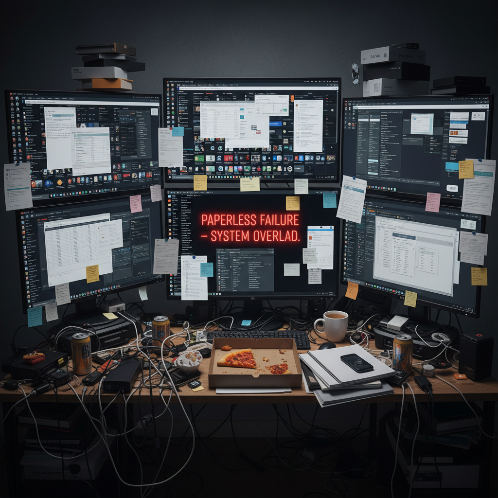 - “Paperless means clutterless”—discounting the rise of digital bloat and version confusion.