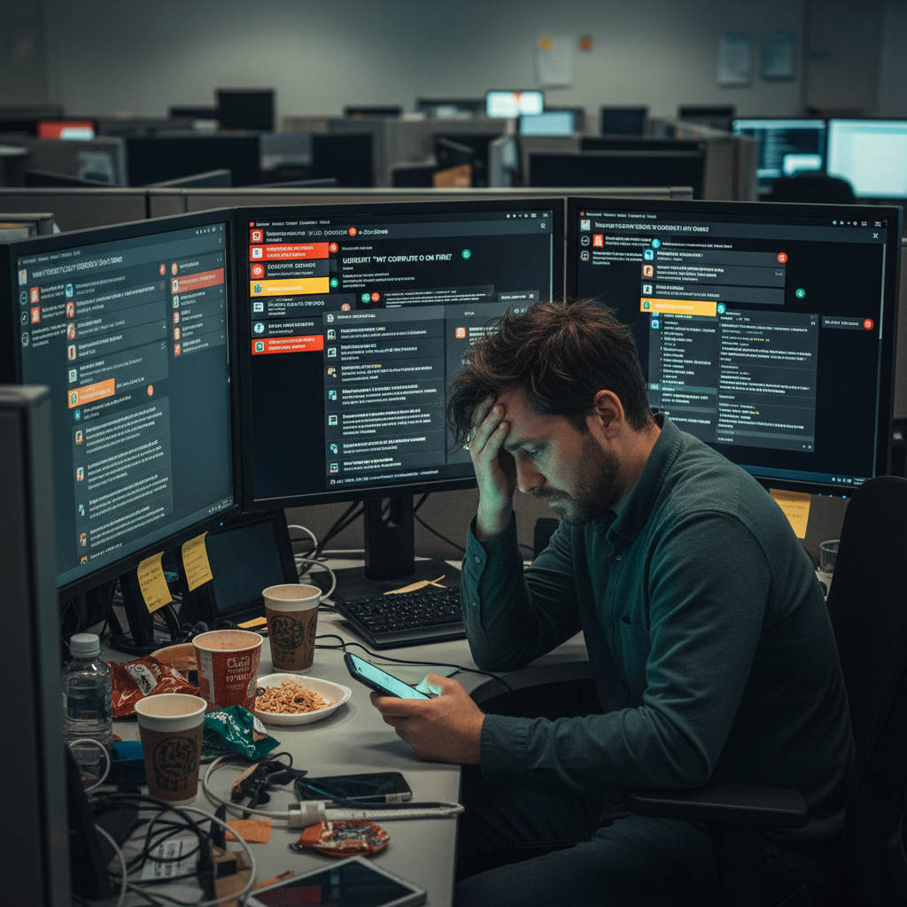 Always-on support culture exacts a heavy psychological tax. Agents field late-night emergencies and internal pressure to never let a ticket linger—even as the queue grows. The result is a mental minefield: disengagement, irritability, and the quiet spread of shadow IT as employees seek shortcuts around sluggish systems.