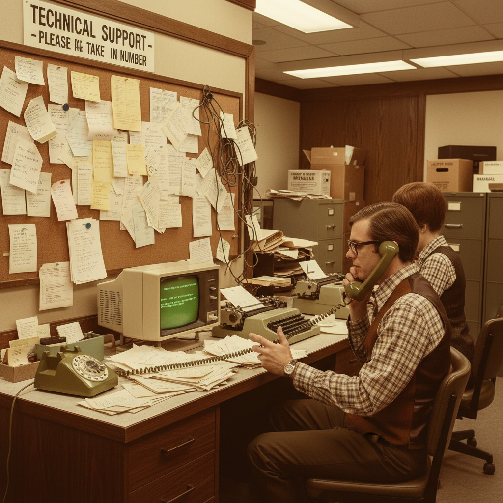 - Analog phone-based IT support (pre-1995)