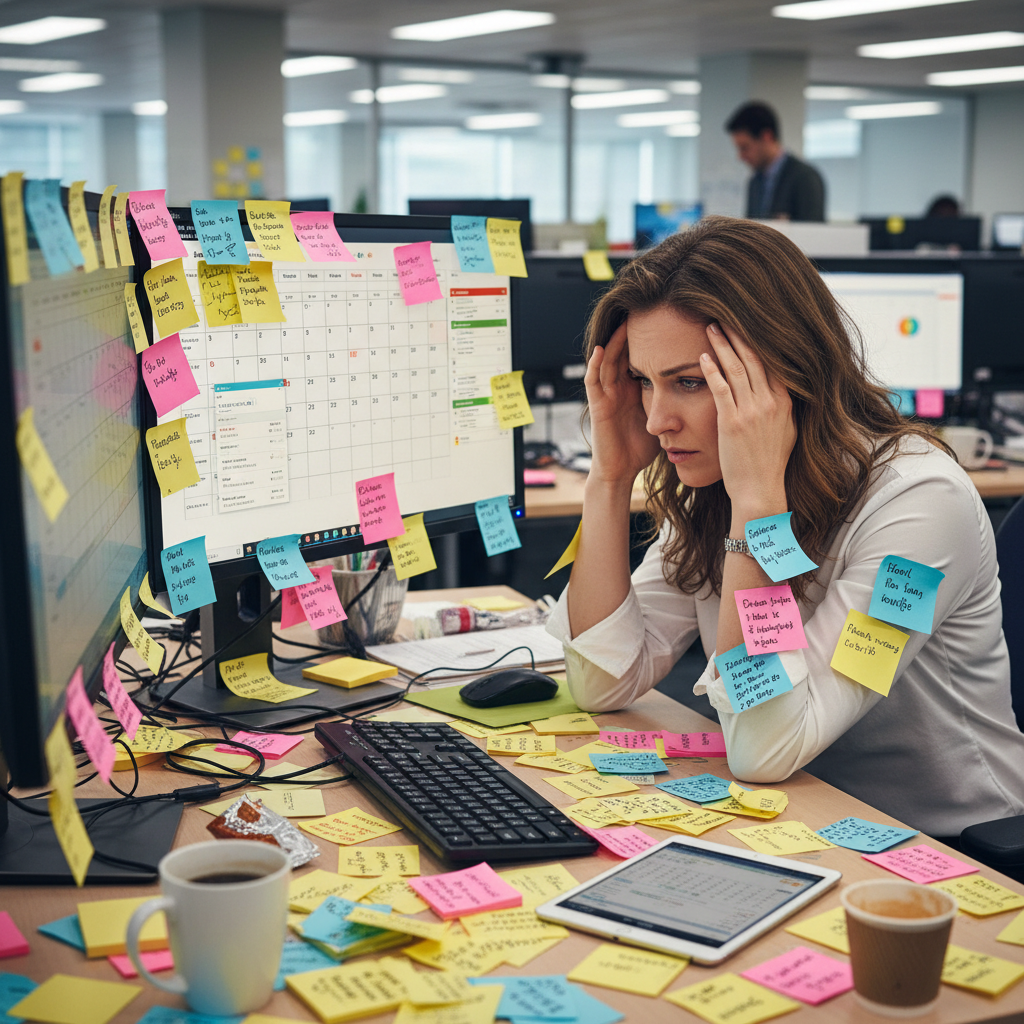 Tracking tasks sounds responsible. After all, professionals have been told for decades that “what gets measured, gets managed.” But the truth, backed by research from TheHubCoworks (2025), is that the very effort to stay on top of every moving part can backfire. The mental cost is invisible but staggering. Every sticky note, every digital ping, every item not crossed off festers as “attention residue” in your mind. You might think you’re being diligent. In reality, you’re creating cognitive clutter—a phenomenon where uncompleted tasks occupy precious working memory, undermining your ability to focus or switch between activities effectively.