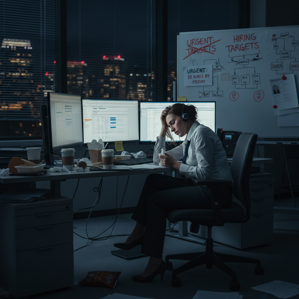 The psychological toll is real. According to Recruiter.com, 2024, 51% of recruiters report high stress due to unmanageable requisition loads and unclear expectations. The “war for talent” is not just external. It’s internal—and relentless.