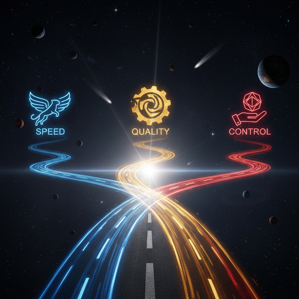 Photo: Dramatic image symbolizing trade-offs between speed, quality, and control in hiring service selection.