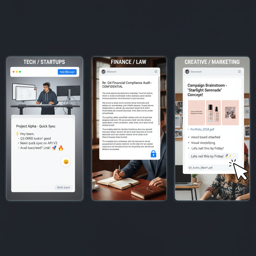 Inbox expectations diverge wildly by sector. In tech, speed trumps everything—brevity and directness are king. Creative agencies, on the other hand, embrace playful subject lines and informal tones but expect lightning-fast iteration. Legacy industries (finance, legal, manufacturing) often cling to formal structures, valuing thoroughness over speed.