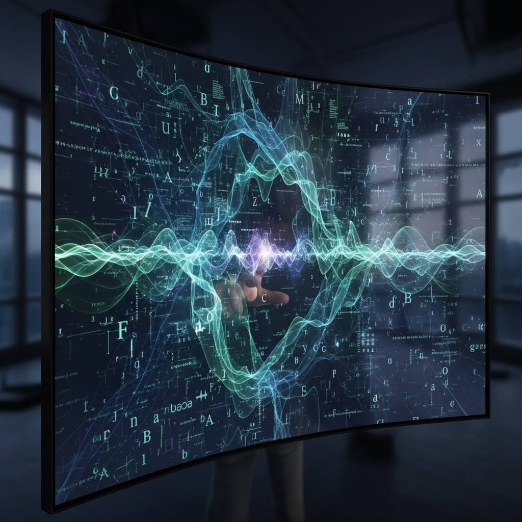 Alt text: abstract visual showing human and AI language patterns merging on a digital screen for intelligent enterprise collaboration tools
