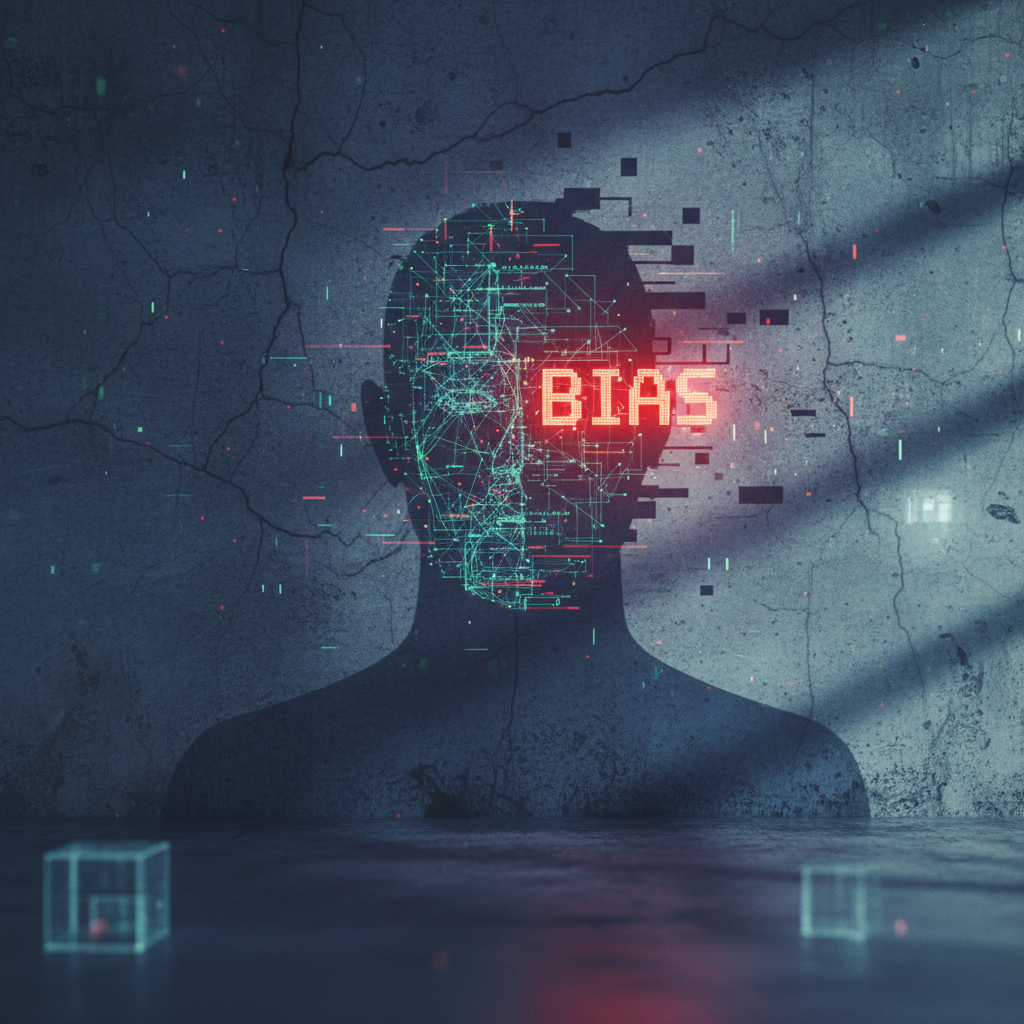 Alt text: symbolic depiction of an AI shadow with a human face illustrating embedded biases in intelligent enterprise collaboration tools