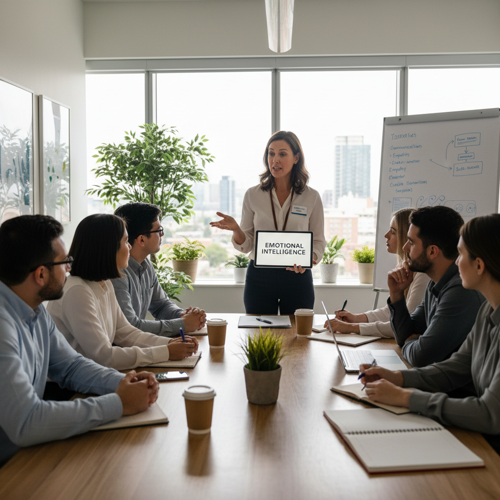 Alt: Legal coordinator using emotional intelligence to mediate a high-stakes legal team discussion